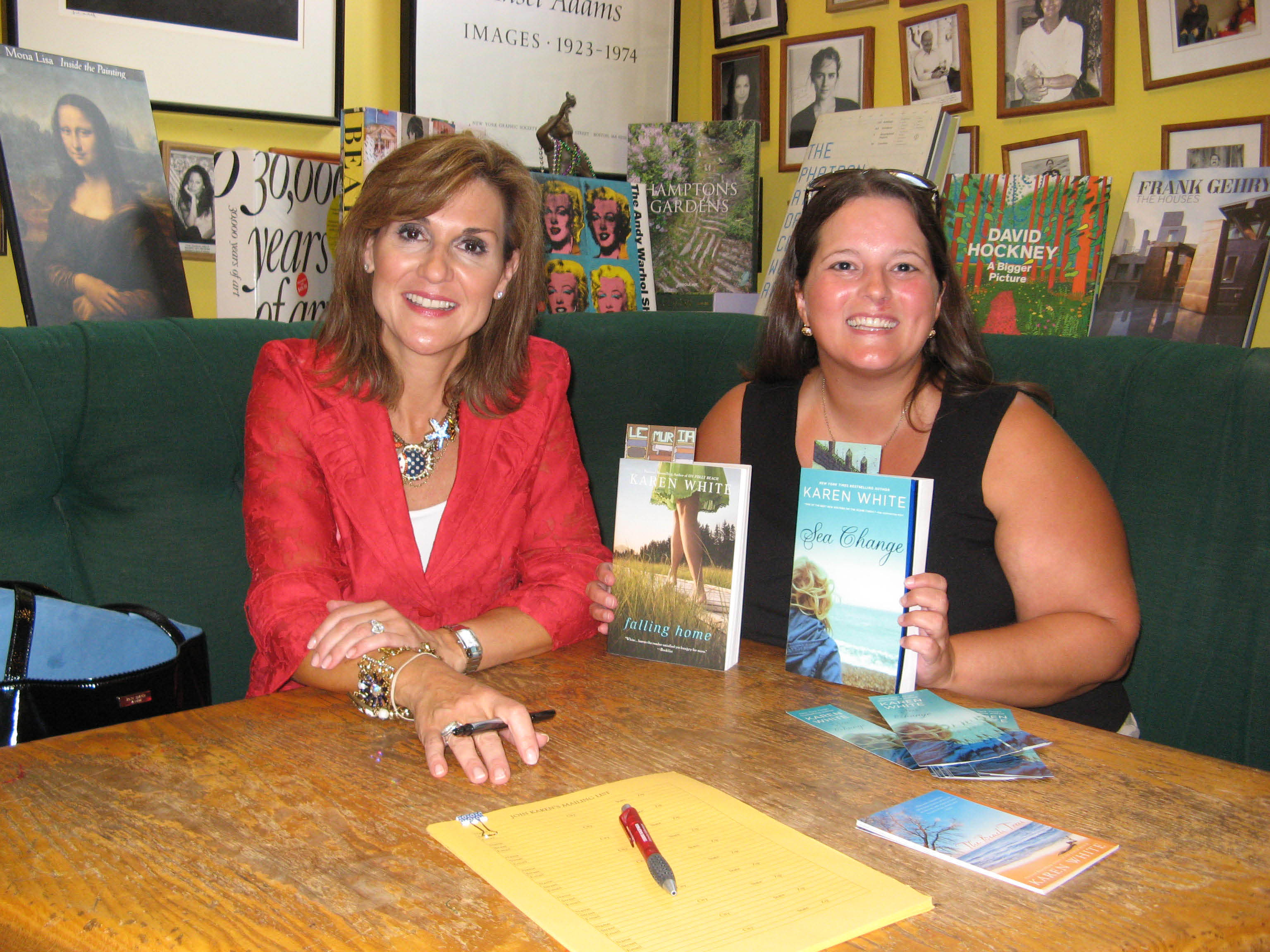 Karen White stopped by Lemuria Books to sign and read from her latest book, Sea Change. But as 2 ladies (Terri and Stacy) found out, Karen was gracious enough to sign all the books they had to have signed. Karen White  appreciates fans!
