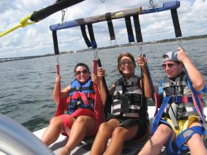 The brother of mine was getting married over the weekend. Both brother and mother wanted to parasail- and I was game for it- because I love to parasail. Love the feeling in the air, looking down at the water, feeling like you are so far away from everything. It’s a wonderful feeling.So all 3 of us went to Radical Rides- we had us a last adventure- just the 3 of us before he got married the next day. Me and my brother rode jet skis together for a bit, and did our pirate talk that only we can understand. Then hunger pains caused us to go to Surf Burger where we had a great little meal and took pictures. After that, it was off to parasail. The crew hooked the 3 of us up and took off- we floated through the air, laughing, talking, and creating a memory.