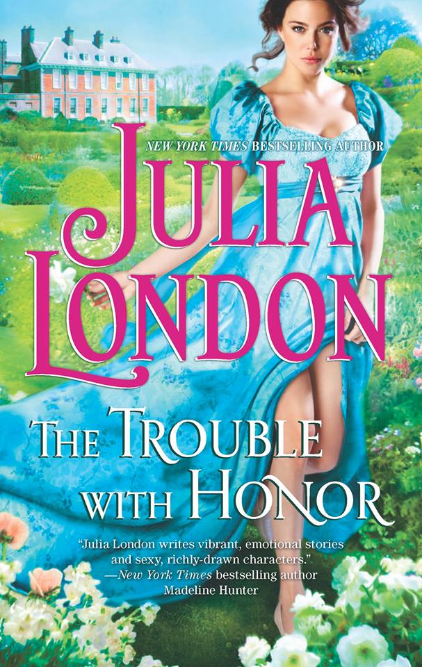 So this is my first Julia London book and I wasn’t quite sure what to expect. But, this cover.. THIS COVER- it intrigues me. The look on Honor’s face. The blue dress. The background. Oh, how this cover intrigued me.