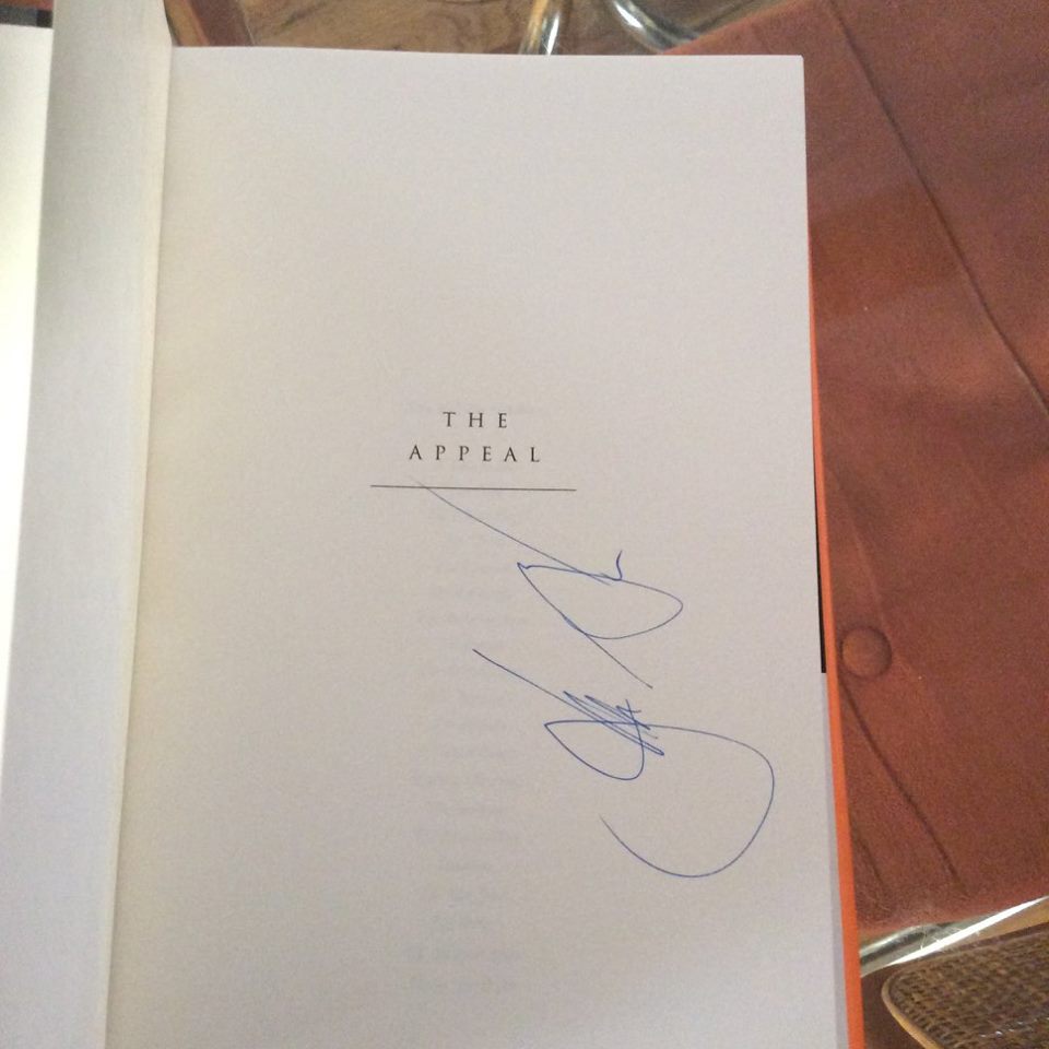 Once upon a time, a long time ago, T was not quite the avid book signing attendee that she is now. But, lo and behold, one day, one happy day- I was in an indie book store to see the Sweet Potato Queen, Jill Conner Browne read and sign from her latest (It should be noted that this was early 2008- just to give you a reference of time!) While there at the signing, I noticed a sign advertising signed copies available of John Grisham’s latest- THE APPEAL. This caused a happy dance in T of magnificent proportions.