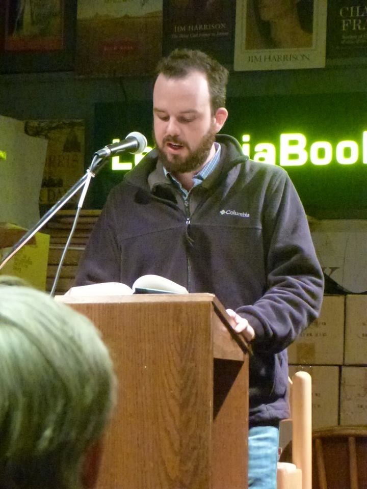 M.O. Walsh begins reading. He starts Chapter 1 and the crowd of 25+ sits in silence listening as M.O. begins the tale of what happened to Lindy.