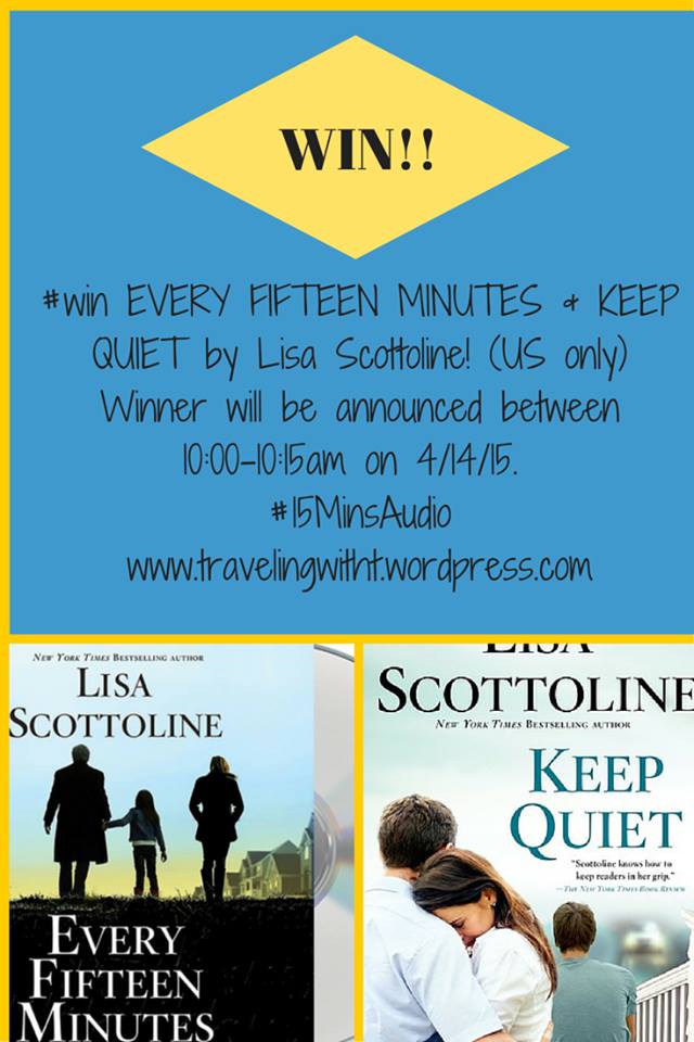 Win 1 audio copy of EVERY FIFTEEN MINUTES and DON’T GO by Lisa Scottoline. Contest is open to US only. Winner will be announced on 4/14/15 between 11am-11:15 EST. Prizes are being provided by Macmillan Audio. Want more info? Check the #15MinsAudio hashtag. To enter, check the Rafflecopter link for more info: