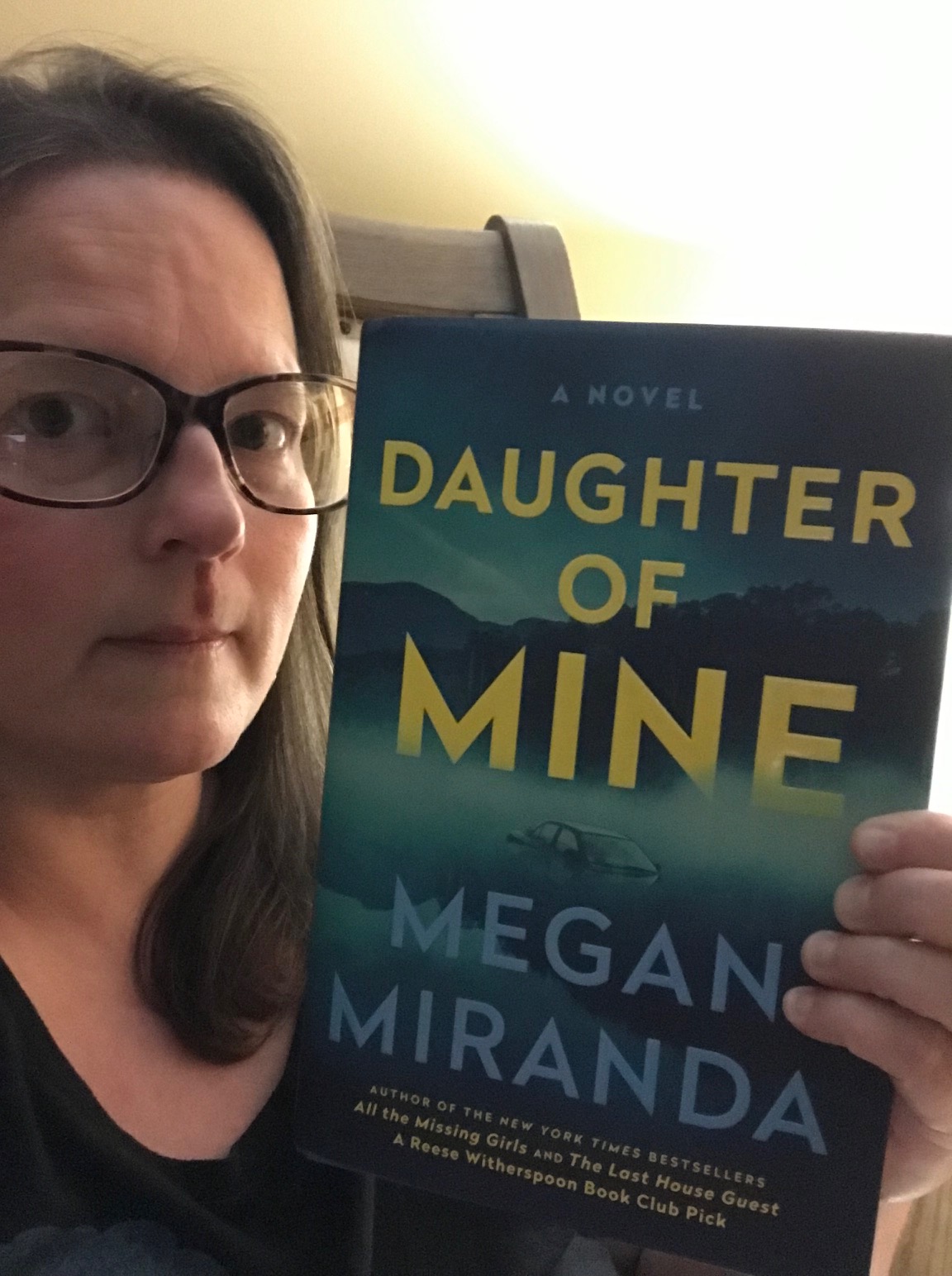Having read many of Megan’s previous books (The Last To Vanish, The Girl from Widow Hills, The Last House Guest, The Perfect Stranger, and All The Missing Girls), when I saw Daughter of Mine on Bookreporter’s Speed Dating, I crossed my fingers, requested and was happy to get an ARC. Then I jumped for joy when a finished copy made it’s way to me (because the cover glows in the dark!!!!)